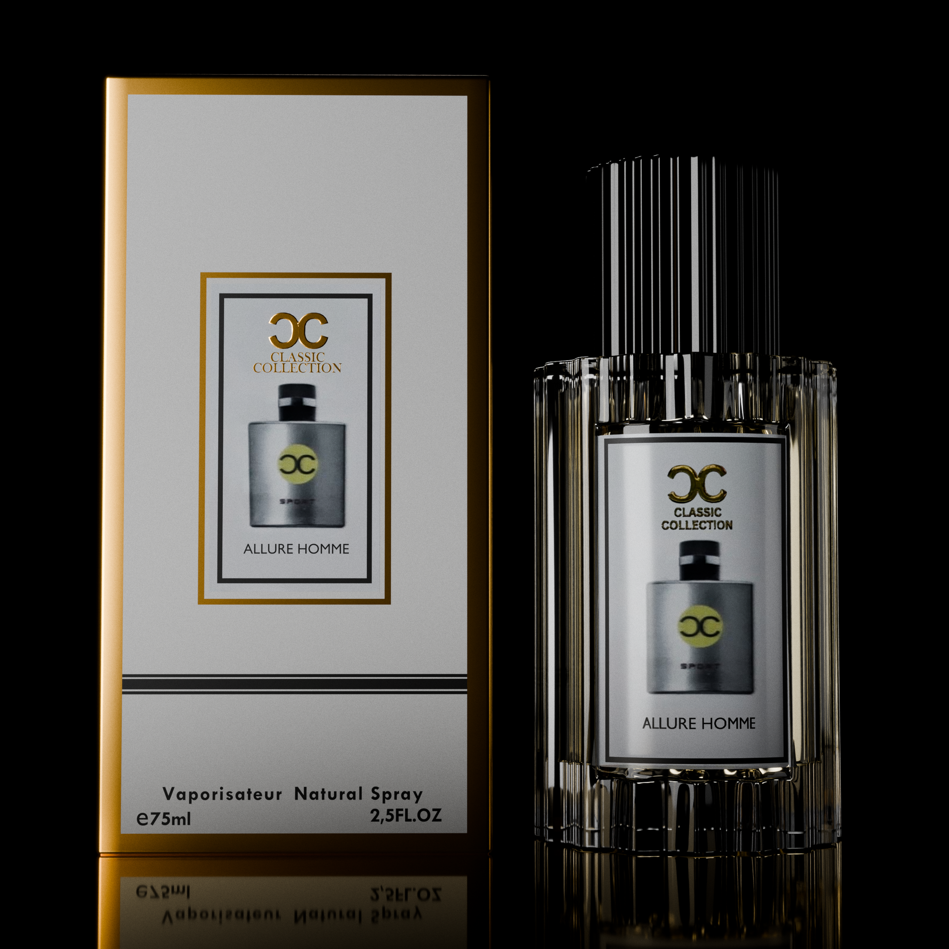 Allure Homme by Classic Collection is crafted for the man in constant motion. Fresh, invigorating, and endlessly refined. Opening with a clean burst of mandarin and sea breeze, it glides into a heart of neroli and pepper before settling into the warmth of cedar, musk, and amber.